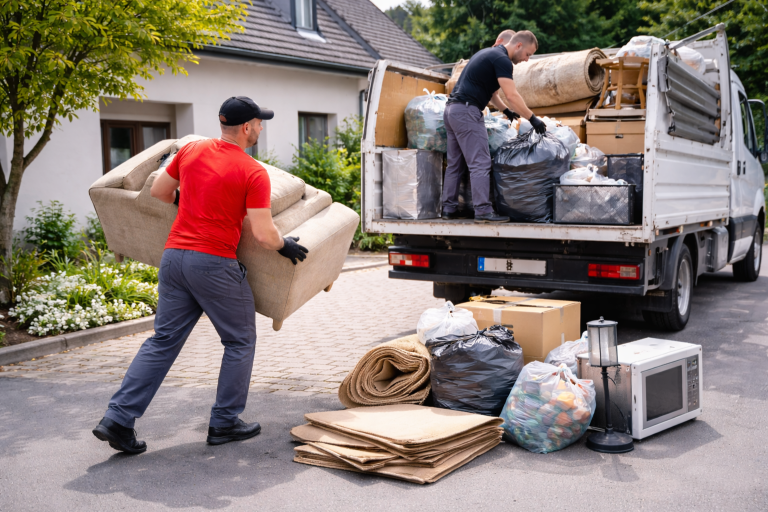 Recogida de muebles viejos, cartón y restos. Dejamos el espacio limpio y ordenado.